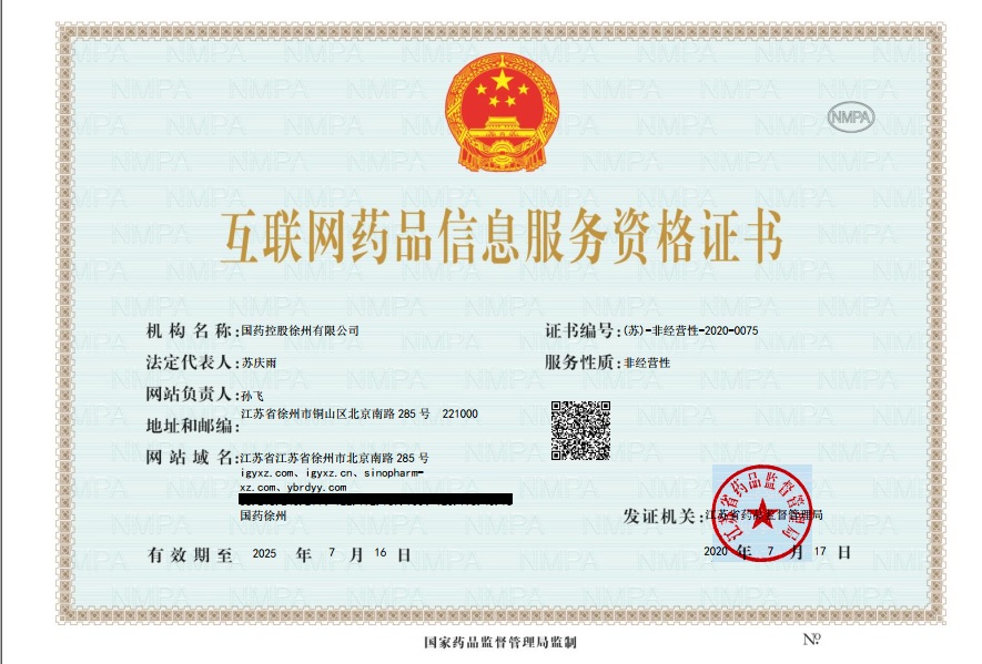 0516-8010-1098 江蘇省徐州市高新技術(shù)開(kāi)發(fā)區(qū) 北京南路283號(hào)萬(wàn)泰廣場(chǎng)1號(hào)樓7-13層 互聯(lián)網(wǎng)藥品信息服務(wù)資格證書(shū)